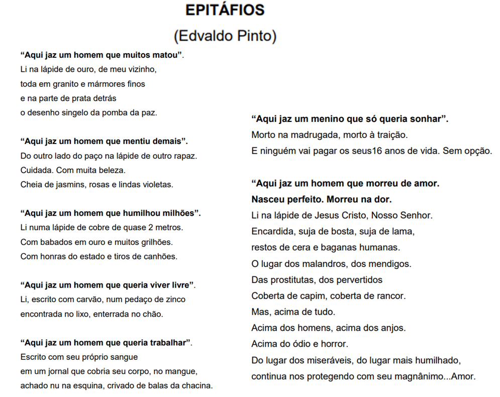 Poema vencedor Epitáfios, de Edvaldo Pinto