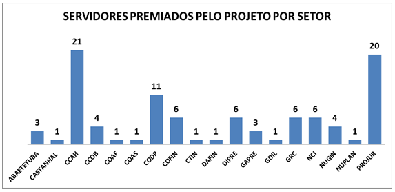 Comparativo do quantitativo de adesões pelo quantitativo de servidores premiados pelo Projeto: