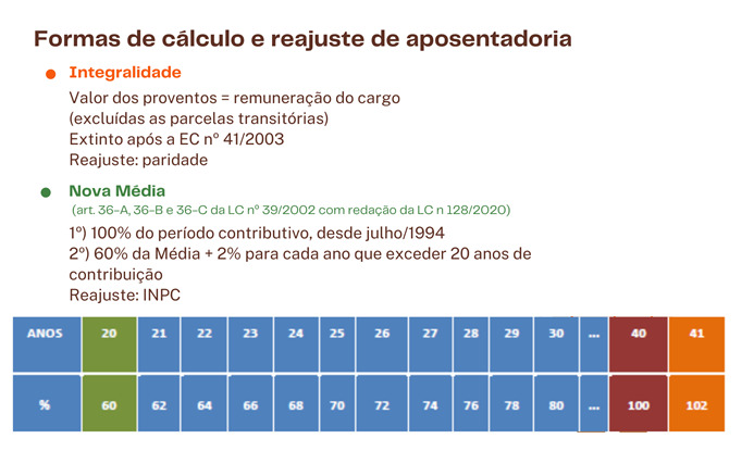 Regra permanente - Para os servidores que implementaram os requisitos de idade e tempo de contribuição após 14 de janeiro de 2020, o cálculo da aposentadoria é feito pela média salarial, que passou a considerar 100% do período contributivo desde julho de 1994.
