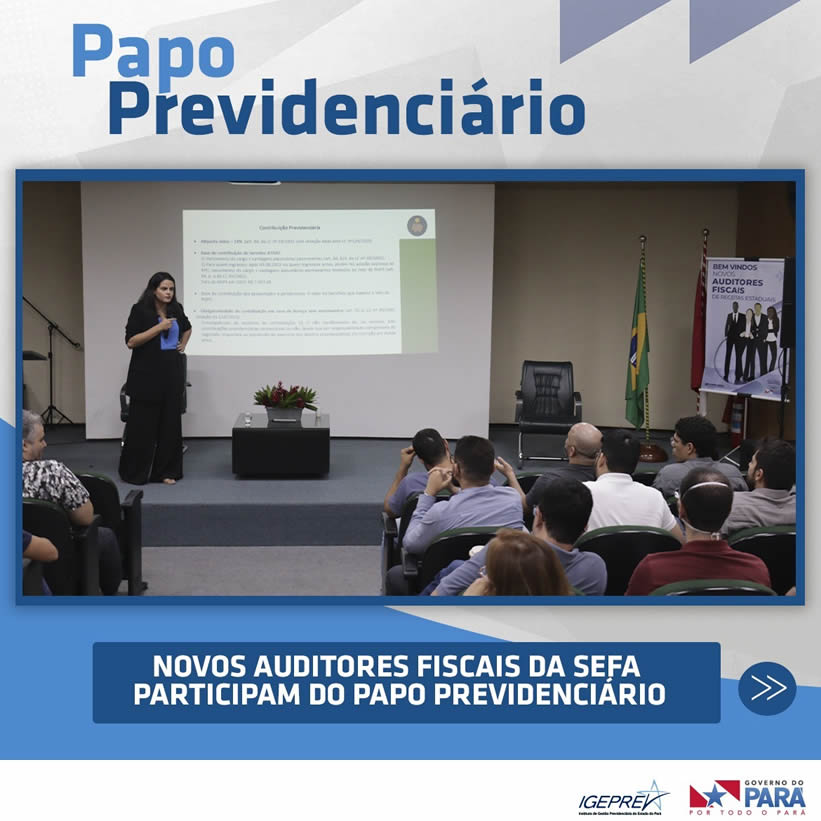 Novos auditores fiscais da Secretaria do Estado da Fazenda participam do Papo Previdenciário sobre atualizações na legislação pós reforma da previdência. Ação realizada em parceria com Escola de Governança Pública do Estado, que promove semana de adaptação aos recém-empossados.